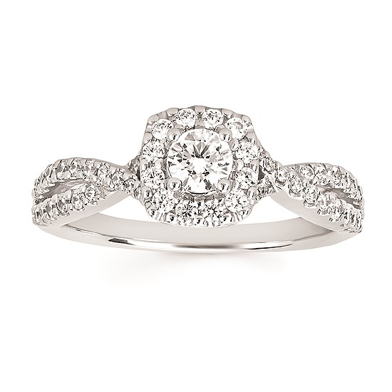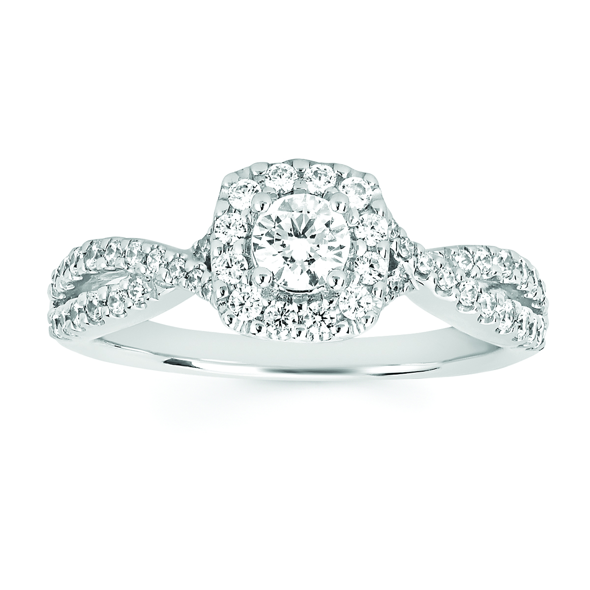 Engagement Ring Halo Bridal: 3/8 Ctw.Diamond Semi Mount available for 1/4 Ctw. Round Center Diamond in 14K Gold