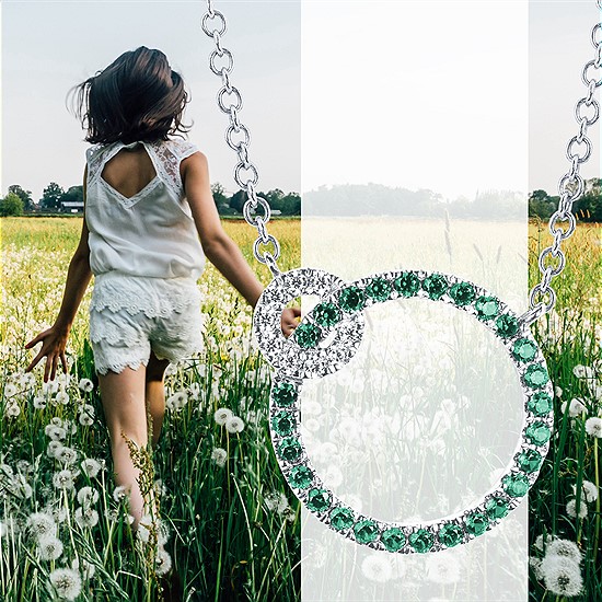 1/2 Tgw. Emerald & Diamond Circle Necklace In 14K Gold